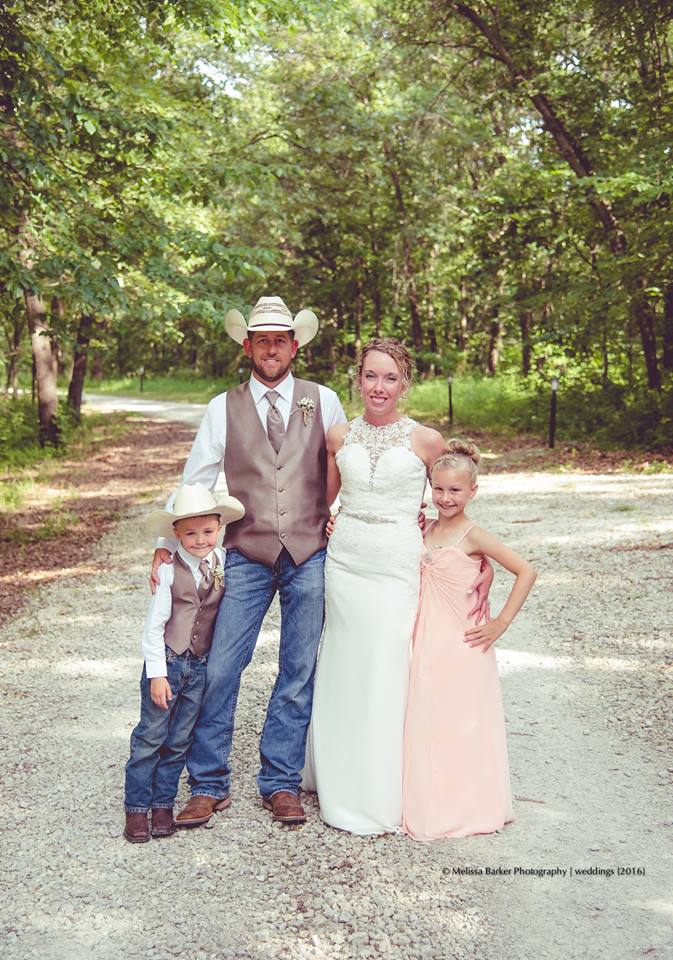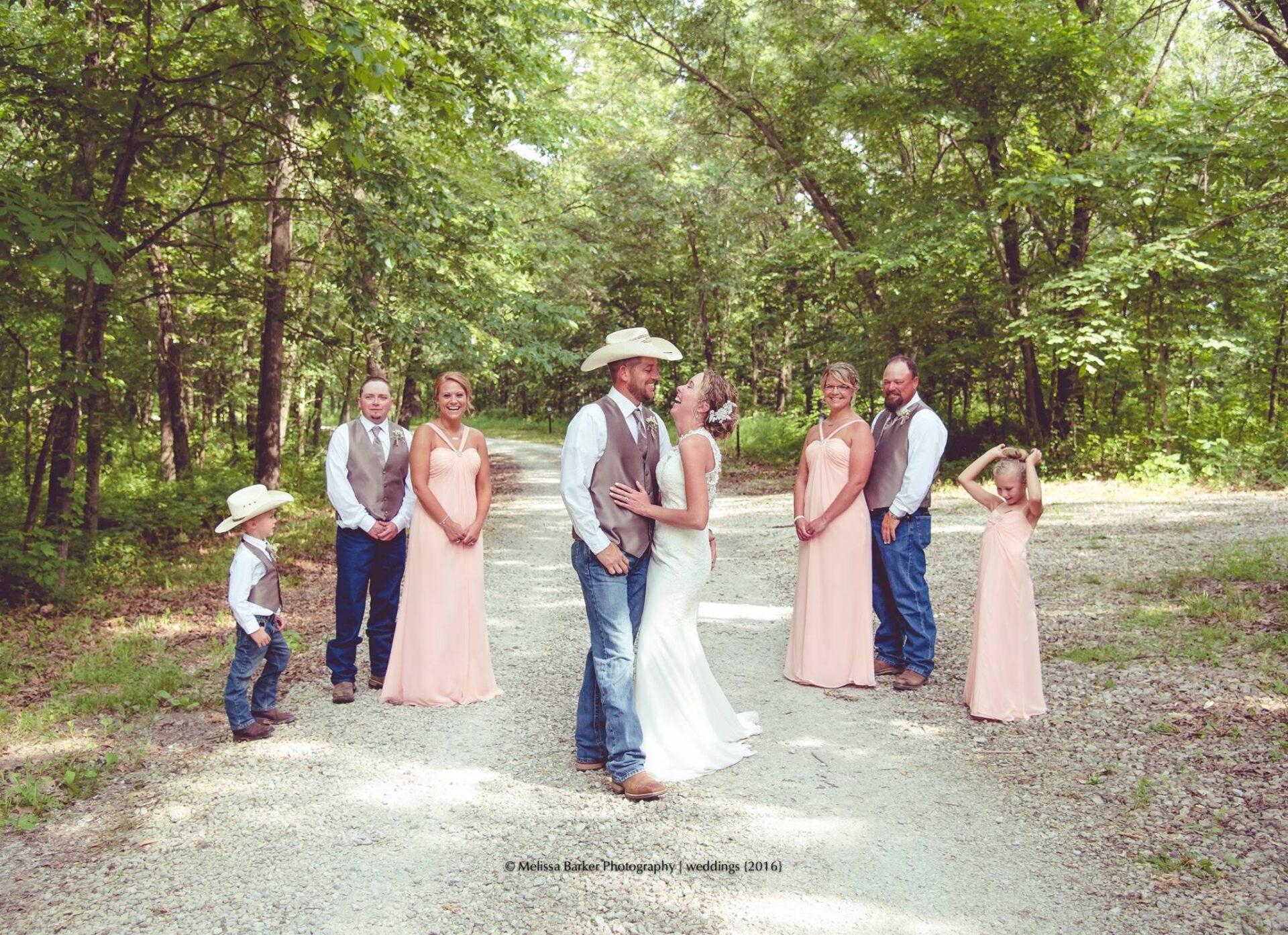 Casey and Trisha were married June 11, 2016 at Soap Creek Lodge in Unionville, Iowa. The two of them met through the modern technology of Facebook and the rest was history! Casey proposed at Christmas giving four boxes to Trisha, each individually wrapped and nested inside one another. Each box contained a different note, popping the question along the way. The last box held the empty ring box and when Trisha looked up, Casey was holding the ring! The morning of the wedding, it was raining and then became extremely hot, but there were a lot of good omens including the rain, as Trisha found two 4-leaf clovers that morning and there were butterflies all around. Trisha said her wedding day was perfect!
